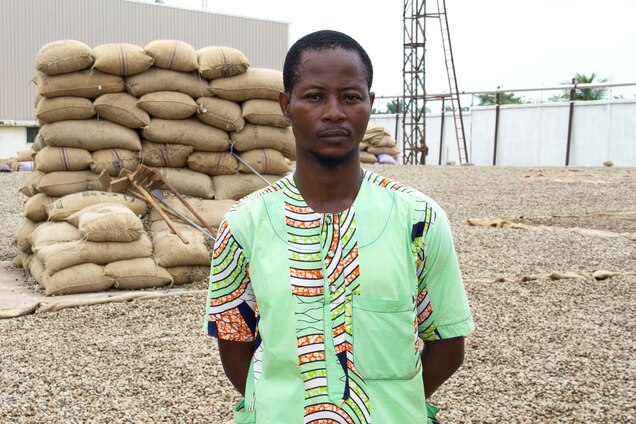 حافظ جبریل، کشاورز بادام هندی، در کارخانه فلودور در بنین عکس می گیرد. در حالی که هند بر بازار بادام هندی تسلط دارد، این کشور کوچک غرب آفریقا یکی از بزرگترین تولیدکنندگان این قاره است، وضعیتی که ممکن است با افزایش دما به خطر بیفتد.